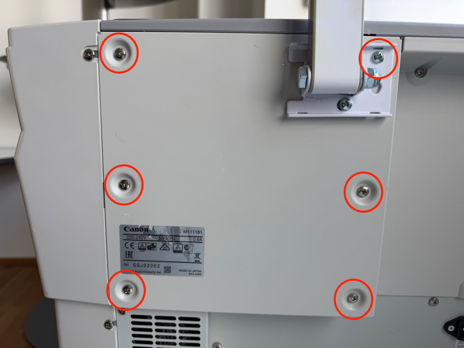 Die markierten Schrauben mit einem Kreuzschraubenzieher lösen und die Metallplatte abnehmen.